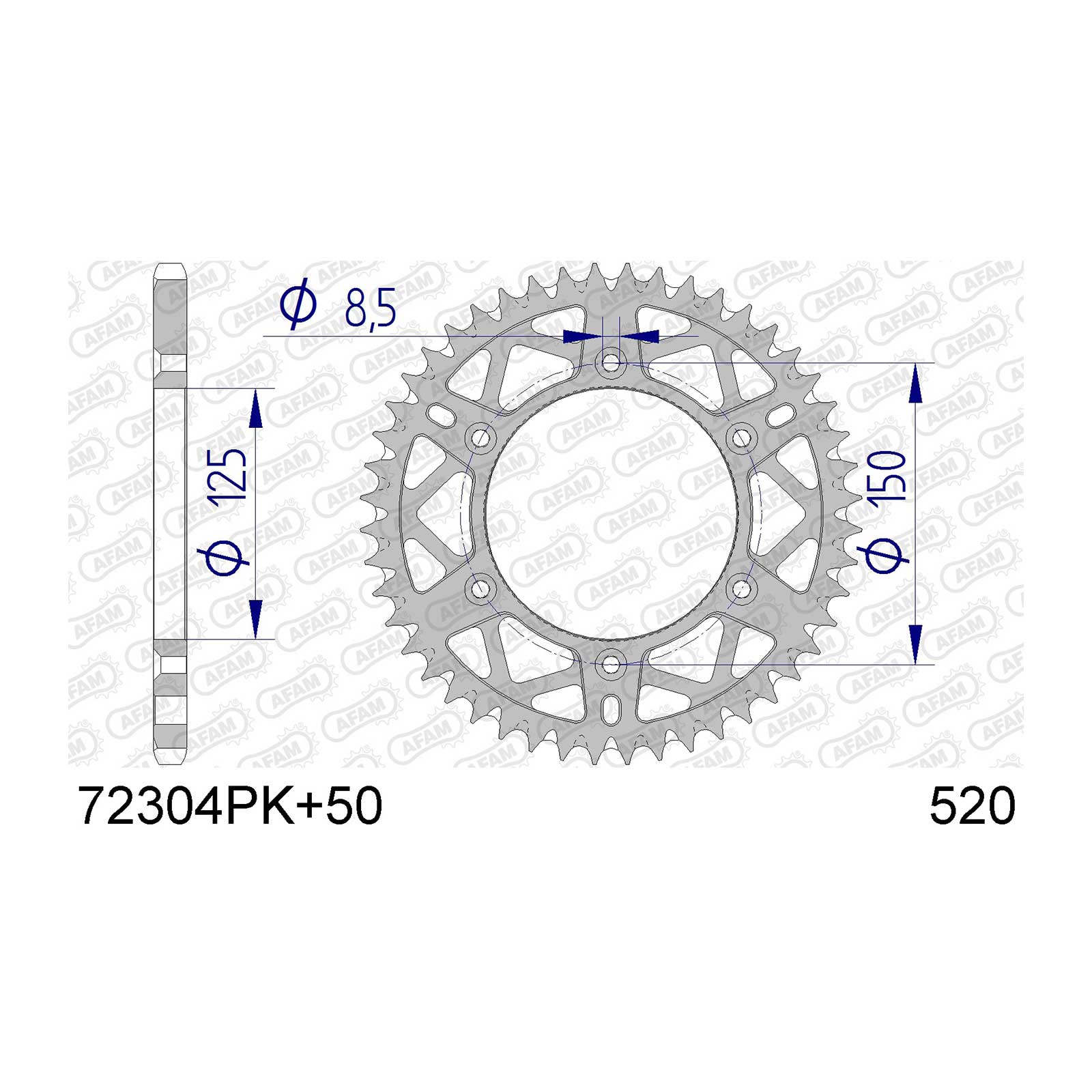 AFAM Kettenrad 520, 50 Zähne, Alu, schwarz, selbstreinigend
