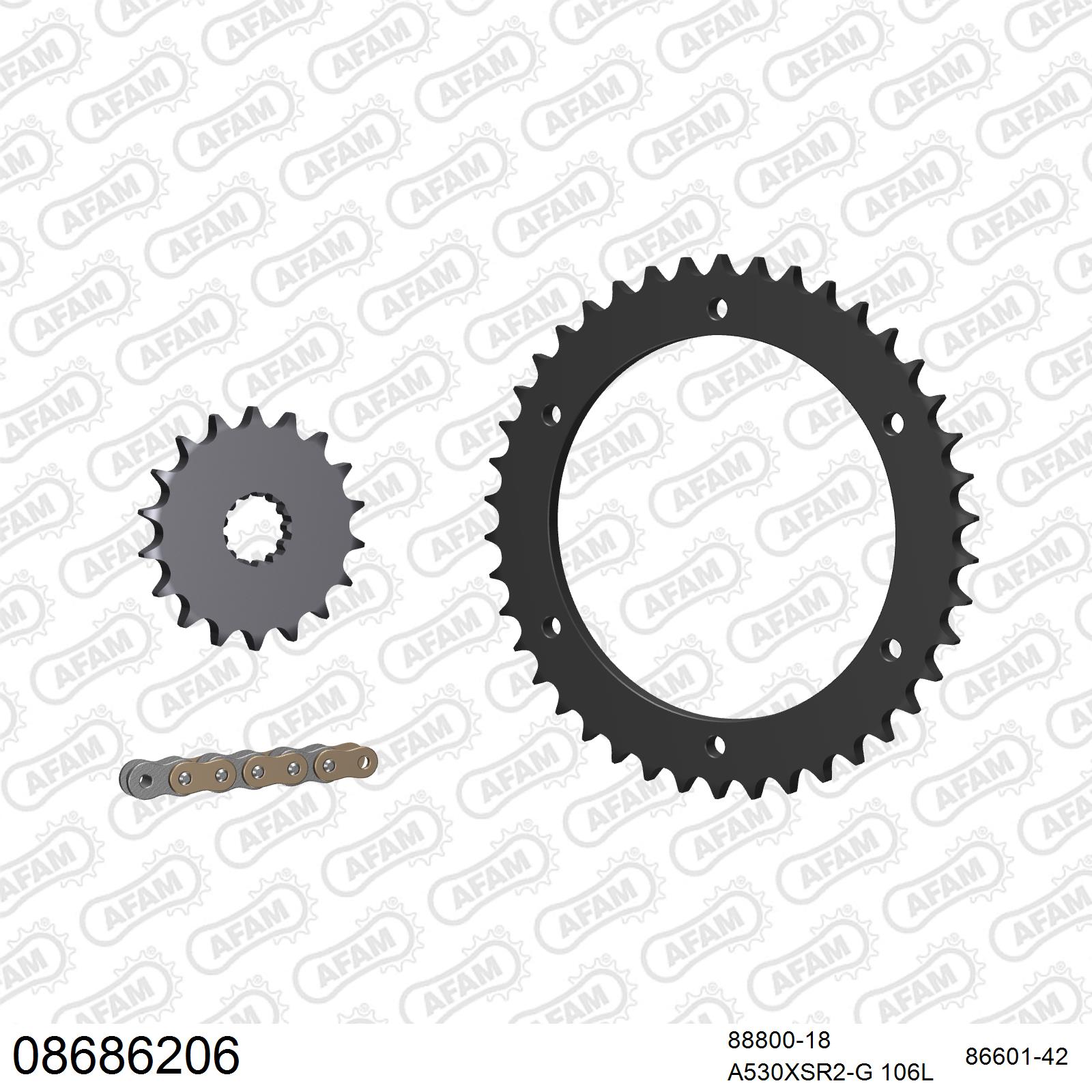 Die Materiallegierungen des AFAM Kettenrad und Ritzel erfüllen höchste Ansprüche und sind in ihrer Toleranz exakt aufeinander und die Kette abgestimmt. Durch innovative Diamond-Cutverfahren sind kleinere Toleranz am Rundlauf möglich, zudem wird die Schnittkante im Zahnflankenbereich hoch verfestigt, was dazu beiträgt dass der gesamte Kettensatz sehr langlebig und haltbar ist.